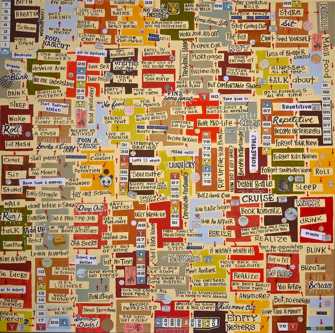 Your map series are my favourites, and possibly your signature art – Road To Nowhere, all its negatives and dead ends, cars stopped in bottlenecks, carparks and one way streets. How did this series progress, do you have the theme in place and continue to build new landscapes?