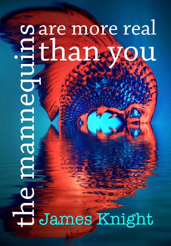 Always find it easy to fall into James Knight’s mind, my imagination primed for his latest collection. The Bird King and I have done this dance before. Other words and worlds he has shared over the years. Good news, the Mannequins are back. A wonderful obsession shared with many. Our showroom friends with their stiff manners, perfect dark side smiles. They are the plastic bones that hold this all together. You will find them wondering around the various levels of his mind, and throughout this book. The windows they tap, tap, tap upon are merely his eyes, riding lifts, popping out at uncertain floors. It is a symbiotic relationship. One can’t exist without the other and they need him more than he realises. The Bird is no king without them. A rewriting of Carroll as Dante has Alice and the rabbit doing very strange things. This bad poets’ alternative holes are filled with an even more surreal reality, 13 of them, his only number. Dr Mort is still alive, closing in on childhood, the past dissolves with every mention. The little poems that sneak in like bookmarks are perfect. The first Patience is a whisper from the back room. Larger characters taking over their stage, like Eve. Epic as an aria “Eve spun a web from midnight, God’s words, frail, dry, got caught in it and shivered to dust” A painting, Sistine in its dream, cracks in the tempera. Objectum sexuality has piqued his feathers, his ‘amorous capriciousness reaches delirious heights‘ and a reminder to hide the furniture when he visits. My dream is to see one of The Bird King’s ‘scenes … that no no one has made‘ mirroring his 13 Deleted Scenes From A Film into a visual feast. Too long a wait, he must do it himself via words, his TV Murder Mystery a gripping story that points the finger at everyone.